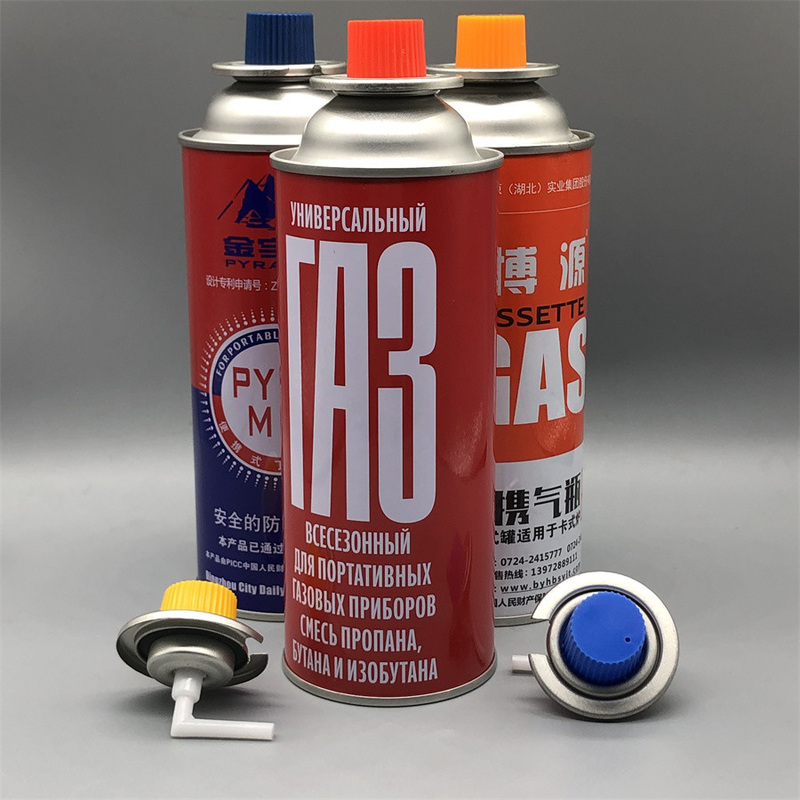 খালি অ্যারোসোল মেটাল টিন ক্যান বহনযোগ্য রিফিলিং বুটান প্রোপেন গ্যাস ক্যান ভালভ সঙ্গে |